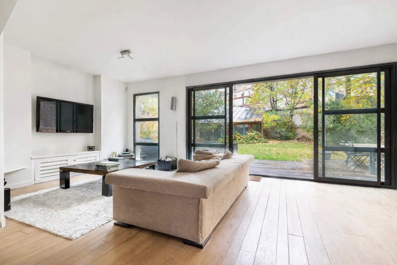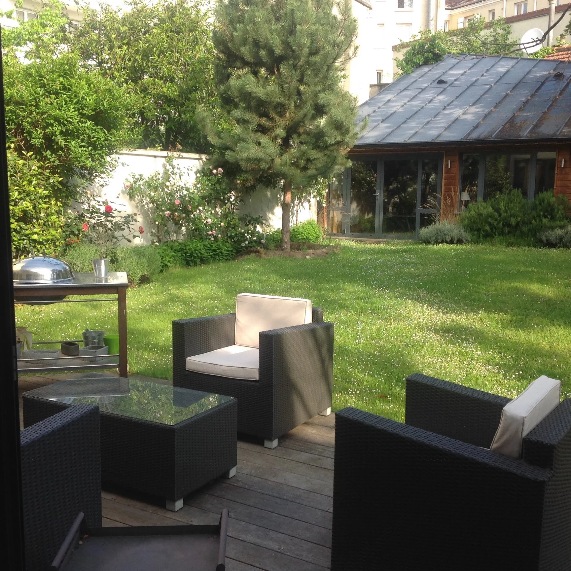 Situé dans une rue calme à sens unique, à proximité de la place du marché,cet ancien rendez-vous de chasse édifié début 19ème et rénové en 2006 saura vous surprendre par son atmosphère unique. Il fut agrandit et entièrement revisité par un architecte ayant mis en valeur ses atouts du passé tout en créant de beaux volumes. L'utilisation de matériaux haut de gamme lui confère confort et modernité, faisant de cette maison un bien chaleureux. La maison est entièrement tournée vers le jardin et donne la sensation d'y être éternellement en vacances. Elle se compose ainsi : Galerie d'entrée, réception traversante de 90m2 ouvrant par de larges baies de plain pied sur une spacieuse terrasse, cuisine us, et coin salon bénéficiant d'une magnifique cheminée. Au 1er étage : Une suite parentale et sa salle de bains ayant accès à une large terrasse surplombant le jardin, une 2ème chambre (bureau/dressing )puis une 3ème chambre et sa salle de bains, toilettes séparées. Au dernier étage, une family room , 2 chambres sur jardin et une salle d'eau/wc. Une annexe de 38m2 offrant diverses options au fond du jardin. Une cave (cave à vin, chaufferie, espace de rangement aménageable en salle de sport ou home cinéma). Surélévation possible. IDEAL FAMILLE RECOMPOSEE PROFESSION LIBERALE Proximité place du Marché,transports, écoles, commerces Gare de Courbevoie ligne L vers Nanterre, La Défense et St Lazare T2 vers Nanterre, La Défense , Porte de Versailles BUS 163, 164 vers Porte de Champerret Place de parking possible en sus